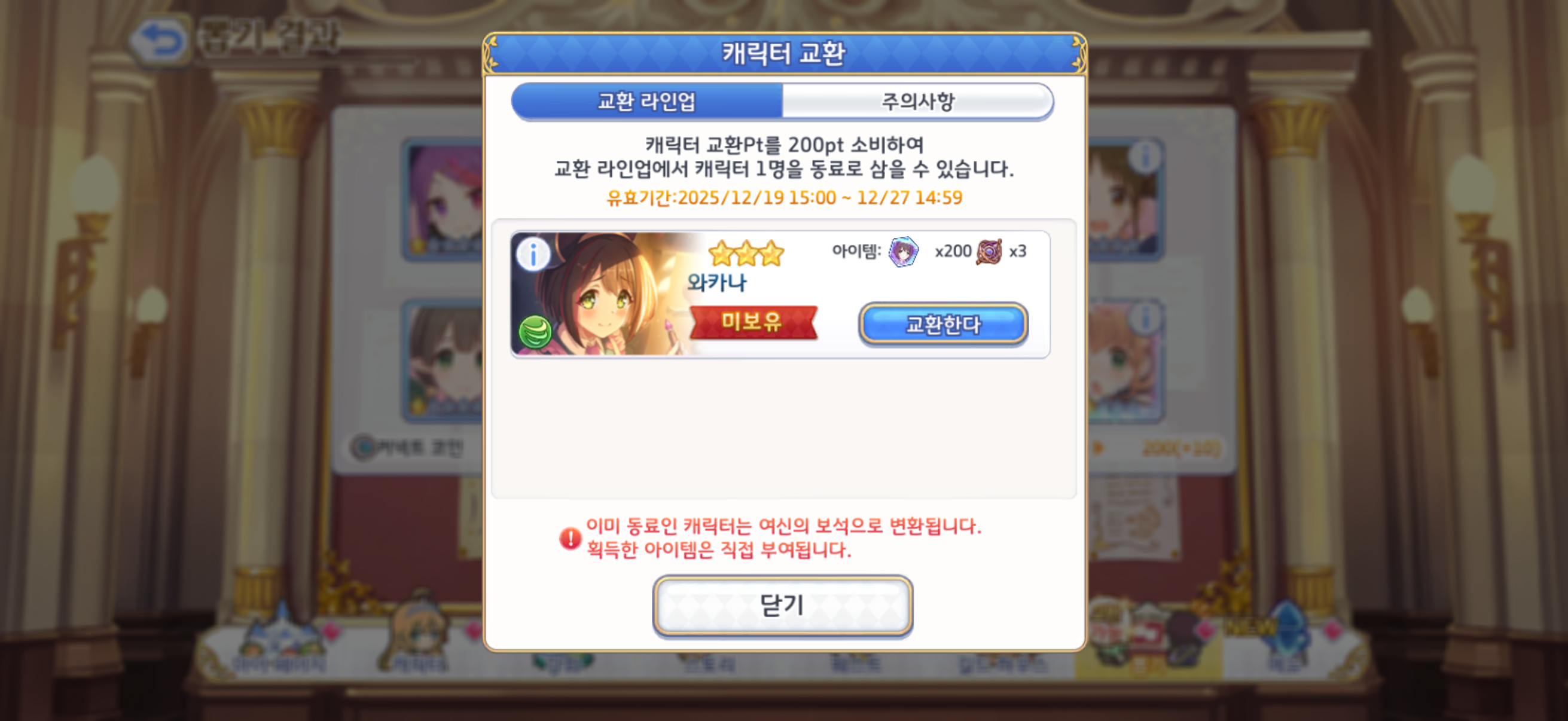 이미 동료인 캐릭터와 교환할 경우 대상 캐릭터 ★에 따라 여신의 보석을 획득합니다.