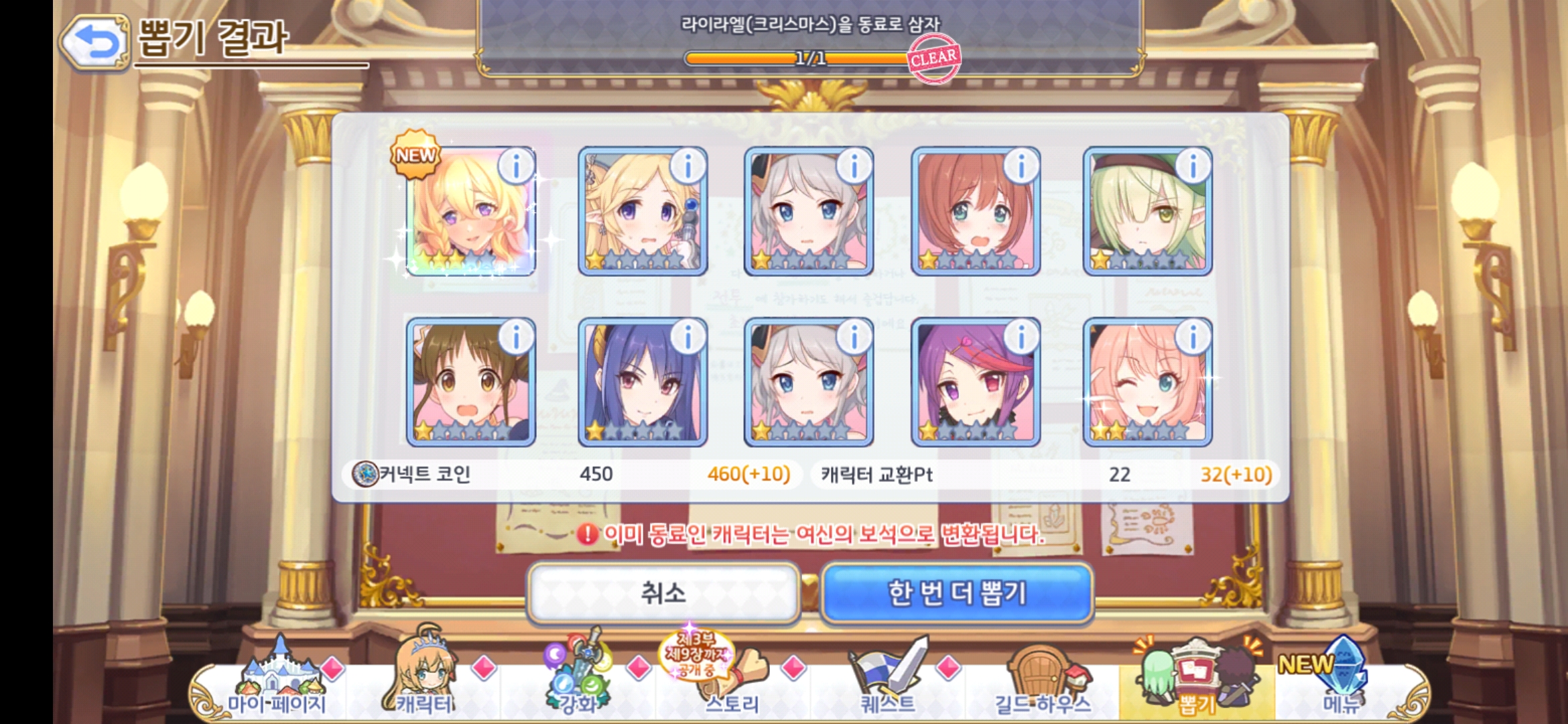 - 10회 픽업 뽑기 시 캐릭터 교환 10Pt를 획득합니다.