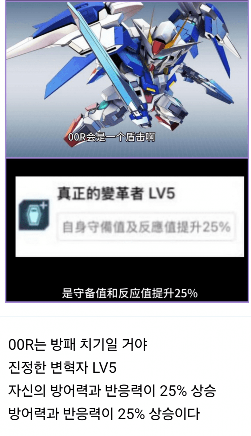 그럴듯한 추론으론 한 시리즈의 주인공 기체가 타입이 겹치지 않도록 가정하면 수마의 경우 에어리얼(통상지원기), 개수(통상방어기), 캘리번(한정공격기) 뭐 요딴거 들이밀면 엑시아(통상공격기), 오라이저(한정방어기), 퀀터(한정지원기) 뭐 이렇게도 상상회로 굴리더군요. | 26.03.17 16:24 | | |