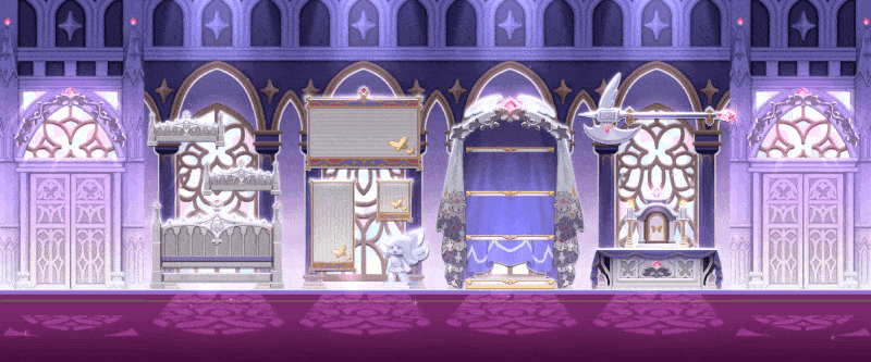 엘리프로 구매가 가능하며, 가구와 액자 등으로 교주의 방을 꾸며주세요.