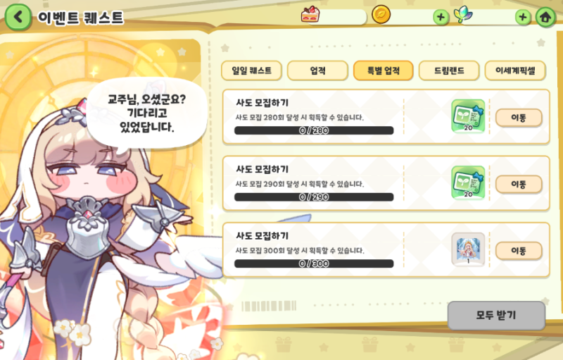 ※ 사도 모집 달성 횟수는 초보자, 픽업, 일반, 소셜, 성격 모집이 모두 포함됩니다. ※