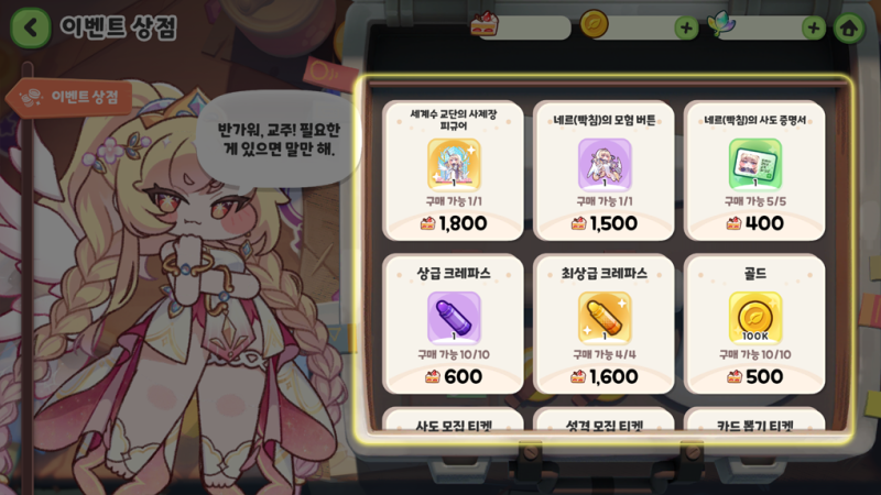 획득한 이벤트 재화를 사용하여 다양한 아이템과 움직이는 네르(빡침) 피규어를 교환할 수 있습니다.