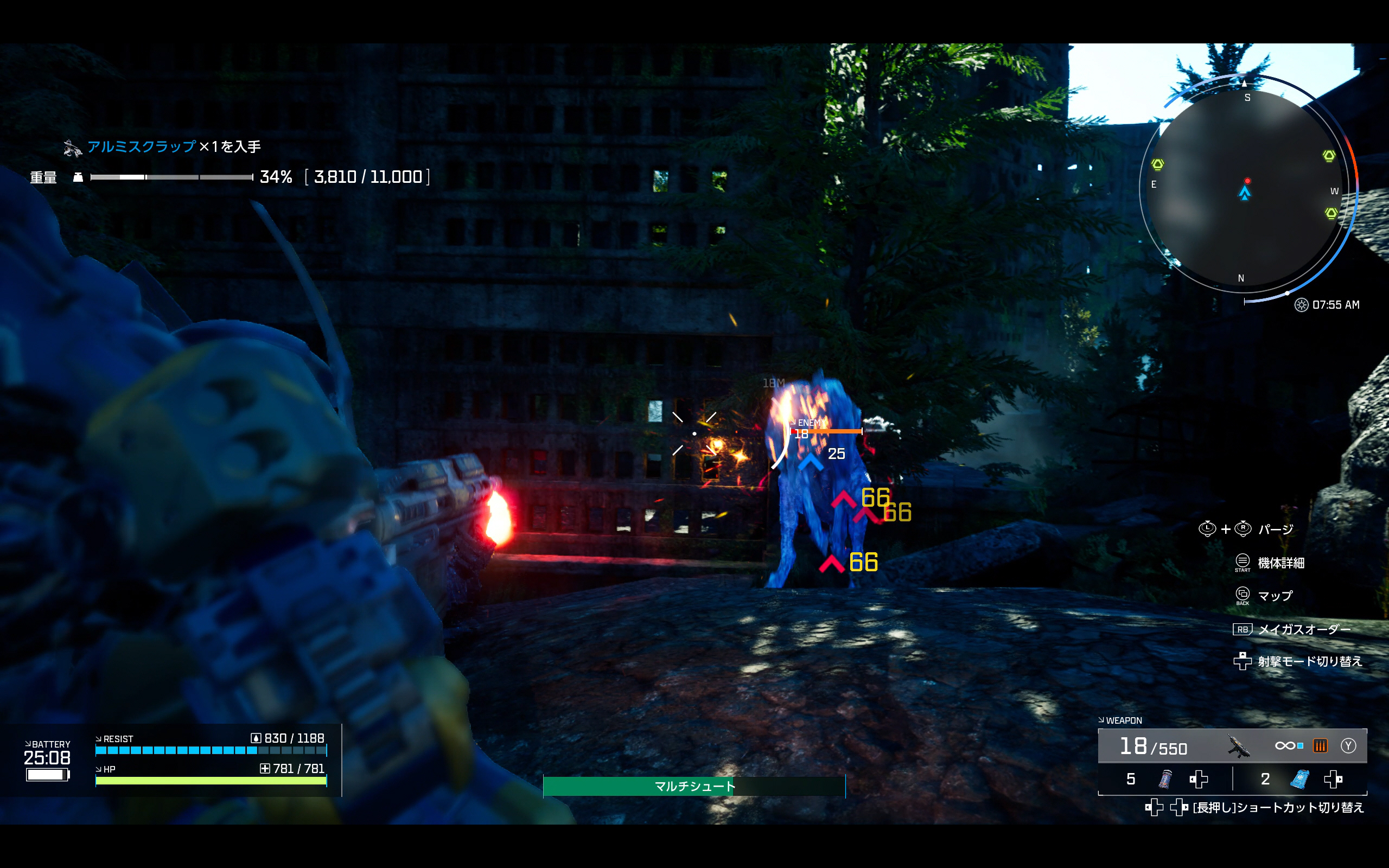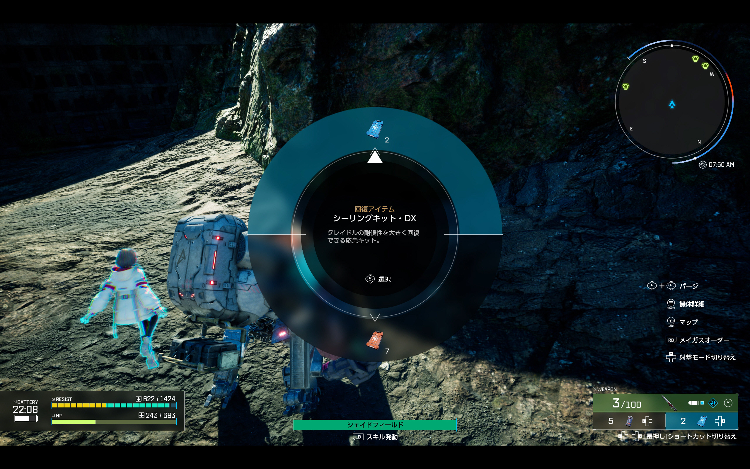 화면 좌측 하단에는 활동 가능 시간을 의미하는 배터리, 내후성에 해당하는 레지스트, 내구치에 해당하는 HP의 세 가지 게이지가 표시되고, 내후성과 내구치의 경우 회복시켜주는 아이템이 존재하지만, 아이템 적용에 일정 시간이 필요해 전투 중 사용은 쉽지 않다.