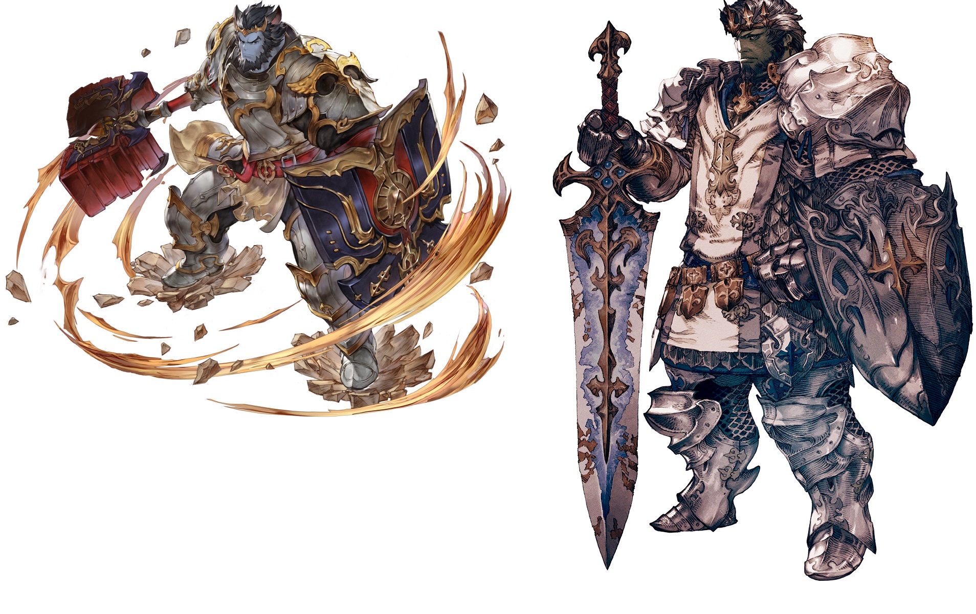 현재 공개된 캐릭터는 영웅왕을 섬기는 그랑 나이츠를 목표로 하는 견습 기사 라스, 폭파 마법에 집착하다 왕국에서 쫓겨나 기사단에 합류한 미케족 소녀 큐이, 쫓기던 자신을 받아준 동료들과 기억을 되찾기 위해 노력하는 소녀 세리야드, 그랑 나이트 칼리츠에게 구원 받아 기사단에 합류한 쿠라마족 전사 윈의 4인이다.