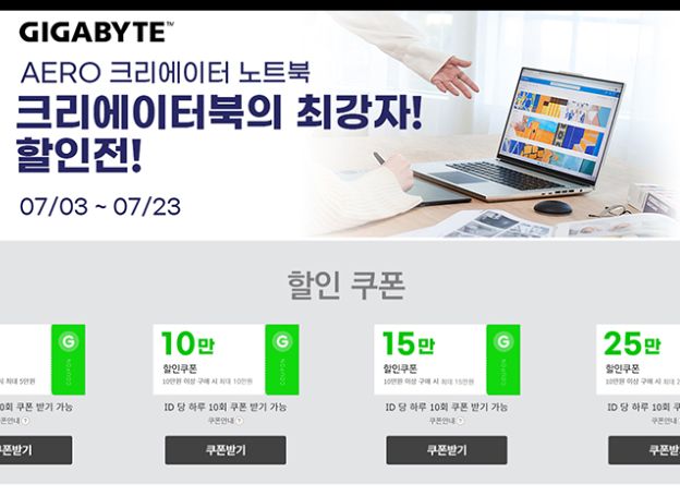 이번 행사는 지마켓을 통해 진행되며 기가바이트 크리에이터 노트북인 AERO 노트북을 중복할인 (최대25만원)과 카드할인7% (최대 10만원)할인을 통해 구매할 수 있다.