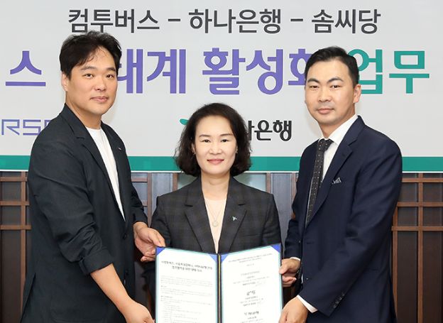 (왼쪽부터)컴투버스 이경일 대표, 하나은행 김소정 부행장, 솜씨당 정명원 대표