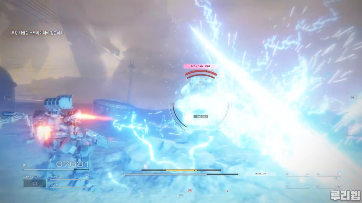 하지만 쉽지만은 않다. 발테우스는 다수의 미사일을 발사하는 타이밍만이 움직이지 않는 상태이므로, 플레이어는 이 미사일을 순간적으로 뚫고 발테우스에게 접근해야 하기 때문이다. 여기서 사용하는 것이 ‘어설트 부스트’다.