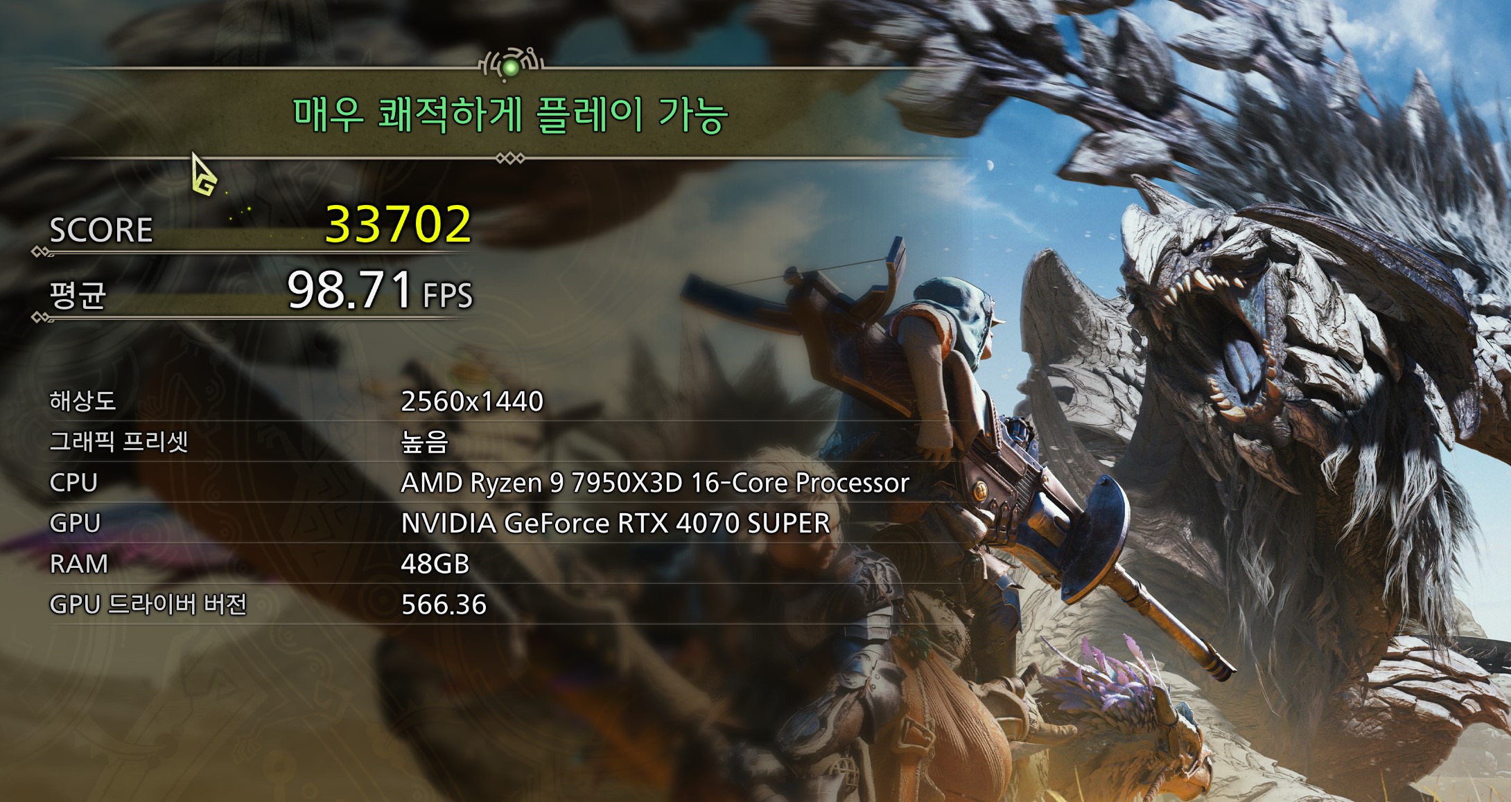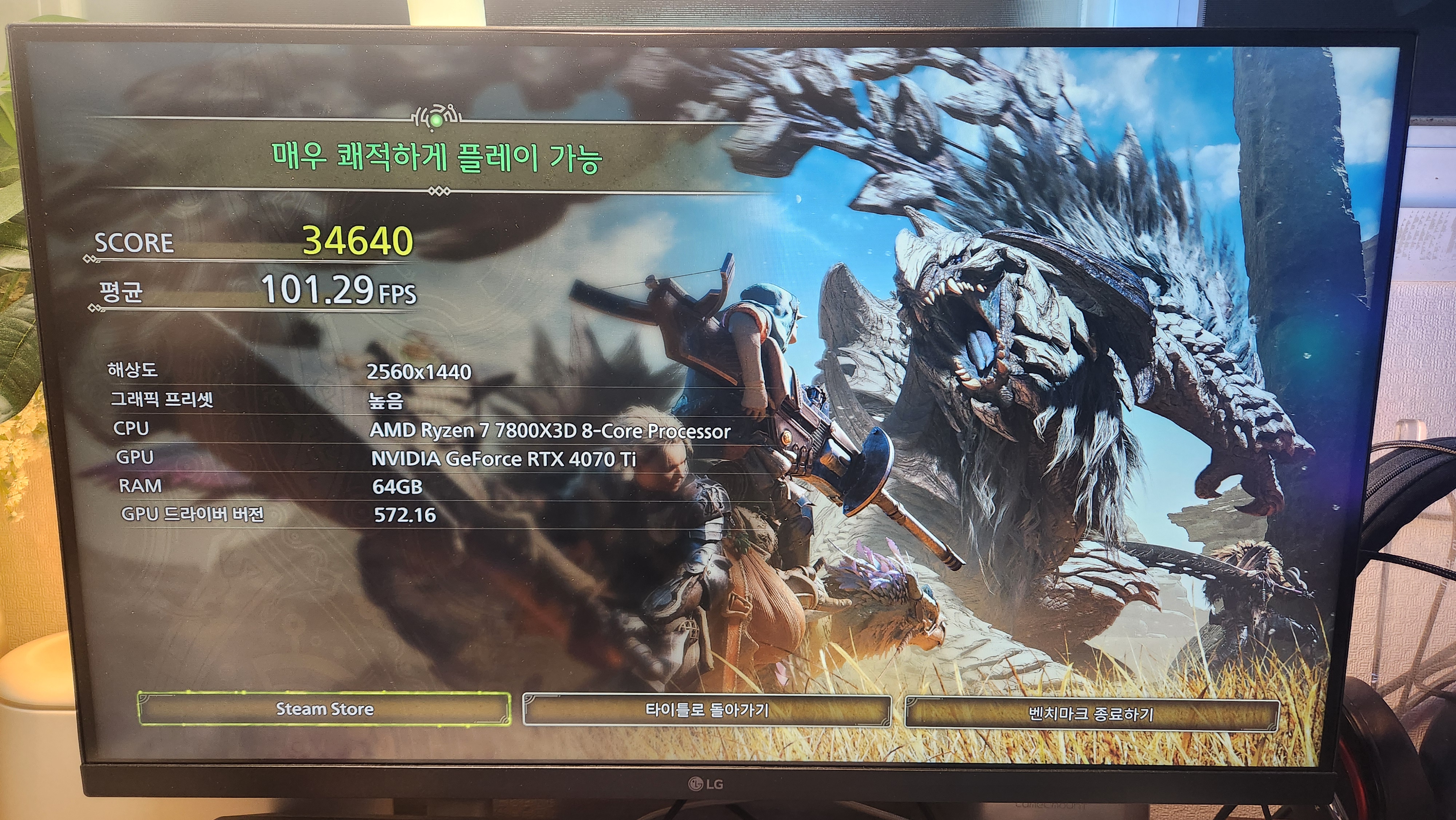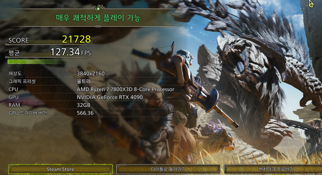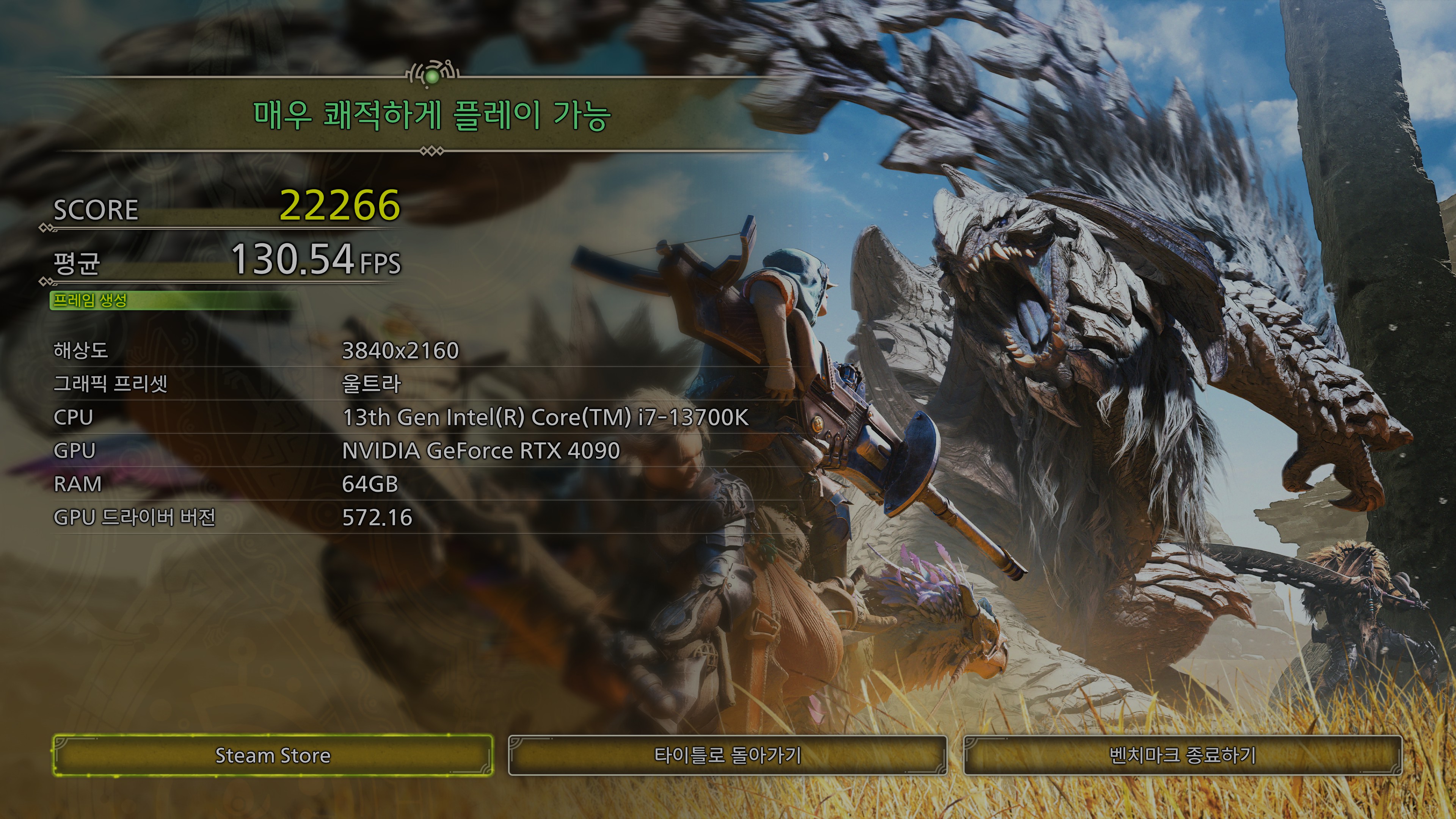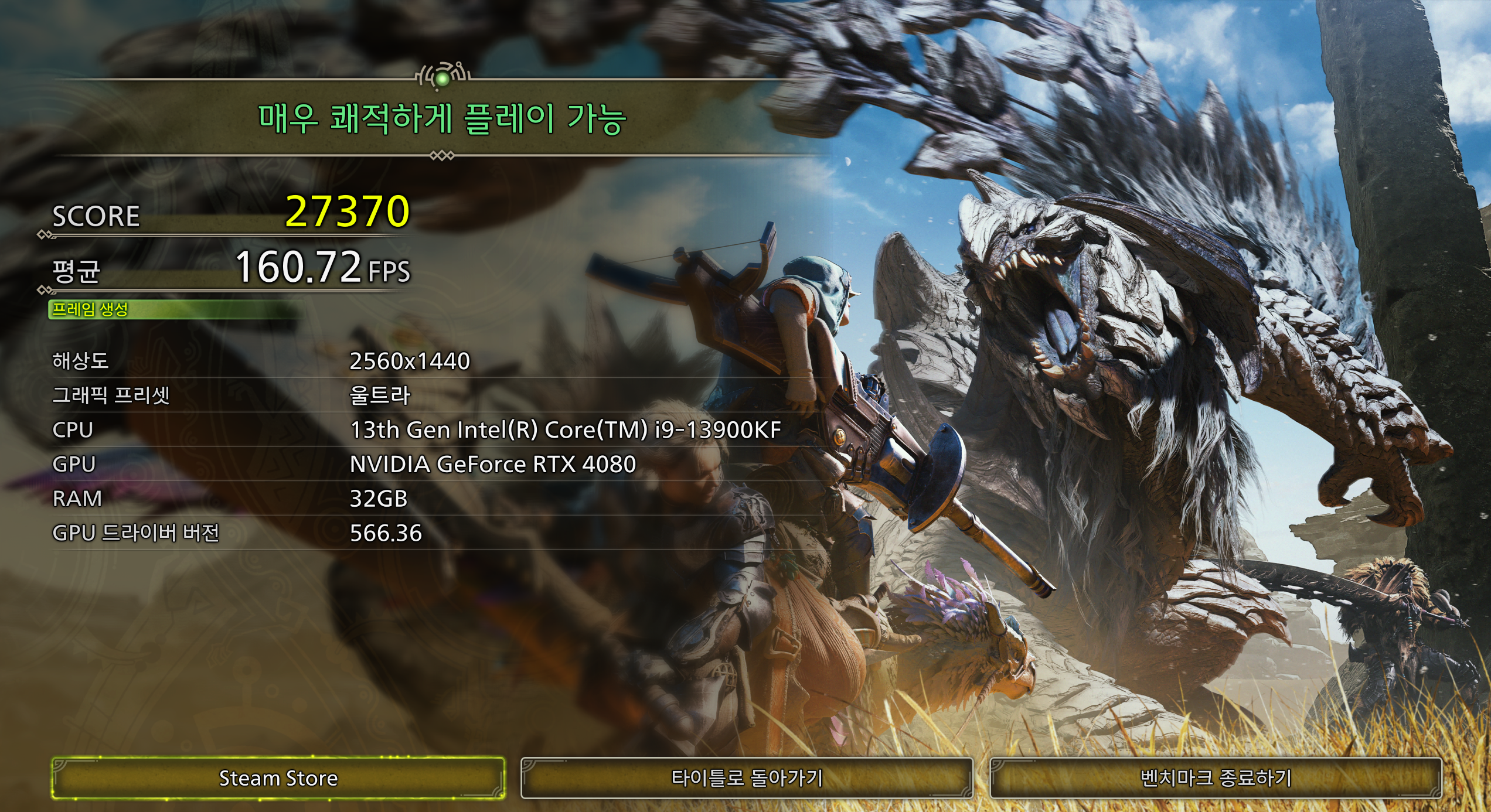 스팀 상품 정보 페이지 에서 다운로드 가능한 '몬스터헌터 와일즈 벤치마크'에서는 몬스터헌터 와일즈의 데모 플레이를 감상하면서 자신의 PC 성능을 측정할 수 있다.