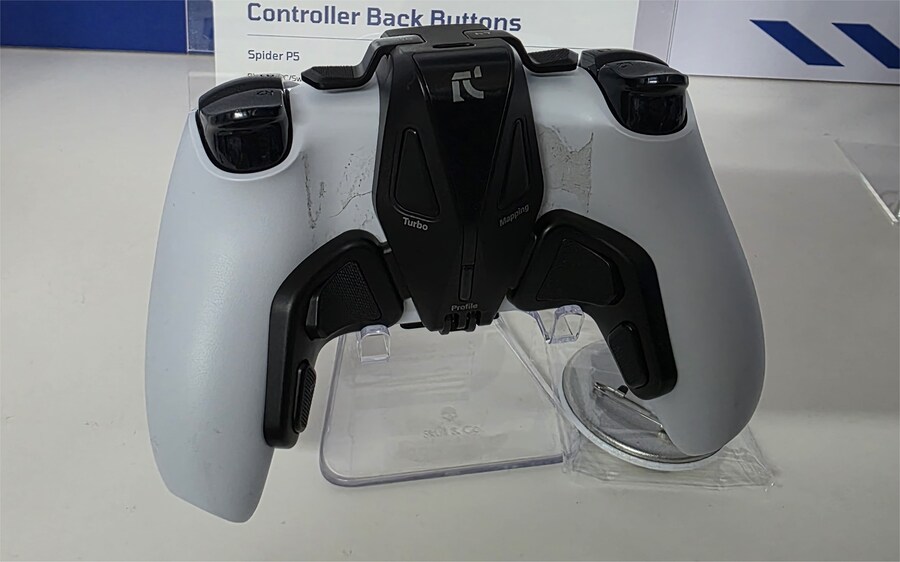 중국 광저우 AK퓨리에서 제작 중인 비라이선스 제품이지만 두께가 얇고 마감이 상당히 좋은 백 버튼 어태치먼트이다. PS5, PC, 닌텐도 스위치에서 동작하는 '스파이더 P5'는 듀얼센스에 4개의 백 버튼과 2개의 숄더 버튼을 제공하며, 터보 버튼, 매핑 버튼, 프로파일 버튼도 달려 있다. 버튼 기능 할당은 매핑 버튼이나 앱을 사용하고, PS5와의 유선 연결에는 '몬스터 P5 플러스'라는 콘솔 컨트롤러 어댑터가 필요하다.