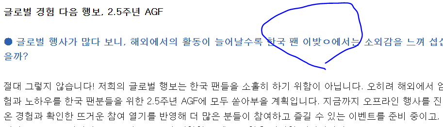 ● 글로벌 행사가 많다 보니, 해외에서의 활동이 늘어날수록 한국 팬 입장에서는 소외감을 느껴 섭섭해 하지 않을까?