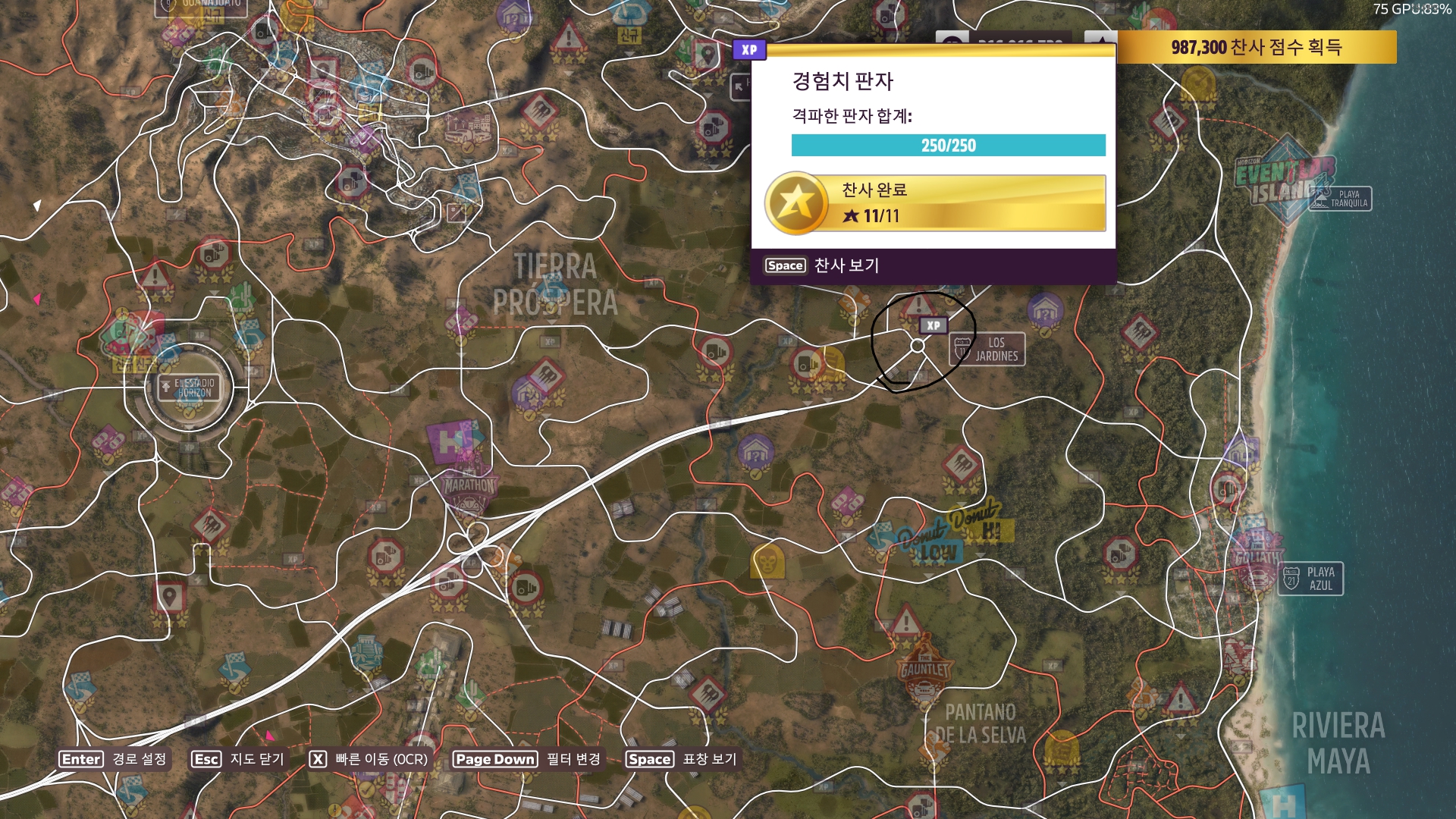 드리프트가 많이 어려워요 그 하고 계신 카라 에스터 드리프트존이 나중에 1,000,000 채우는 퀘스트 나올때 있어요 그래서 저도 그 드리프트 존에서 연습을 종종해요. 일단 드리프트 튜닝 세팅은 하셨을거고 난이도 설정에 제동력 ,트렉션 컨트롤, 스태빌리티 컨트롤 끄시고요 변속은 가급적 수동으로 체크하시고 드리프트 하실때 엑셀 조절해서 시속 100km에서 110km 유지하는게 좋고요 원돌이라고들 부르시던데 스샷 위치에서 드리프트를 차선 유지하면서 도는걸로 연습하라고들 하시더라고요