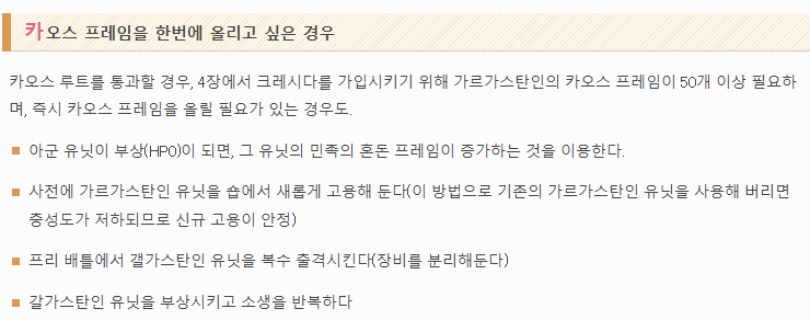 되도록이면 아군들 사상자, 부상자 없이 카오스프레임을 낮추려면 어떤식의 진행이 좋은지 궁금합니다.