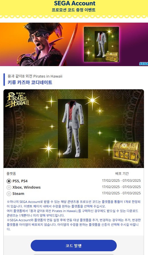 위의 링크에 들어가셔서 세가 어카운트 가입하시면