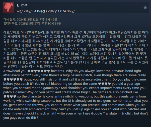 - 이 패치 하나 때문에 불쾌하고 불편함. 헬다디코도 다 이거 버그라고 하고있음.