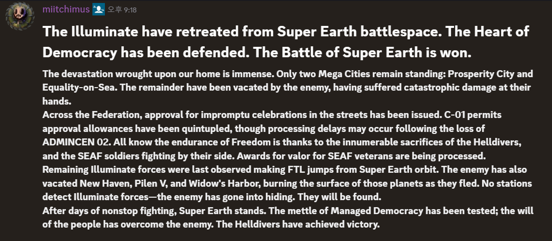 [정보] 슈퍼지구 방어 성공 [4]