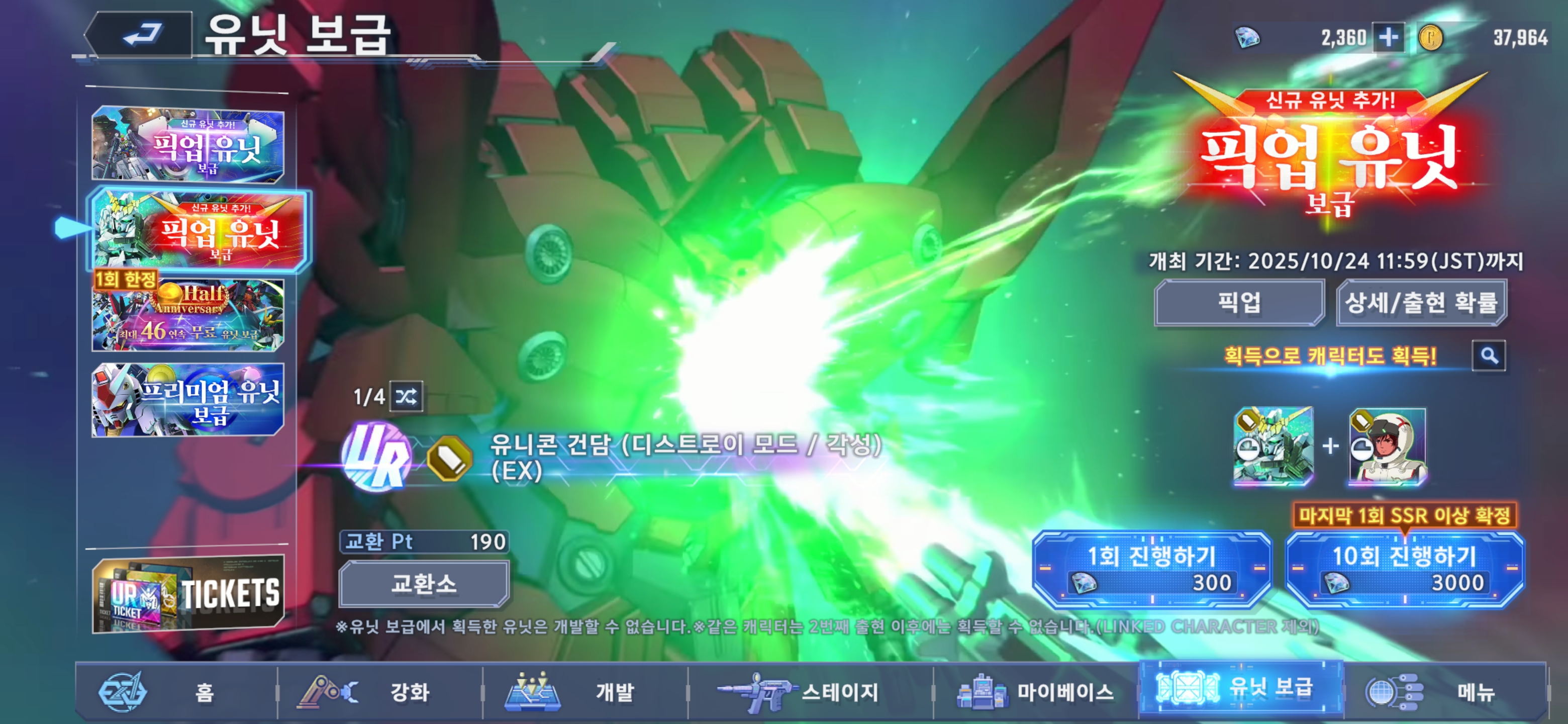 190뽑에 갓 하나 f91하나 프리덤 하나 벨토치카 하나 나왔습니다 갓은 ur승급썼구요 담주 금욜 12시까지 3000돌 채우기에 초록 유니콘 명함 챙기려 합니다 200뽑 해서 명함챙기시는것도 나쁘진 않습니다 | 25.10.14 19:36 | |
