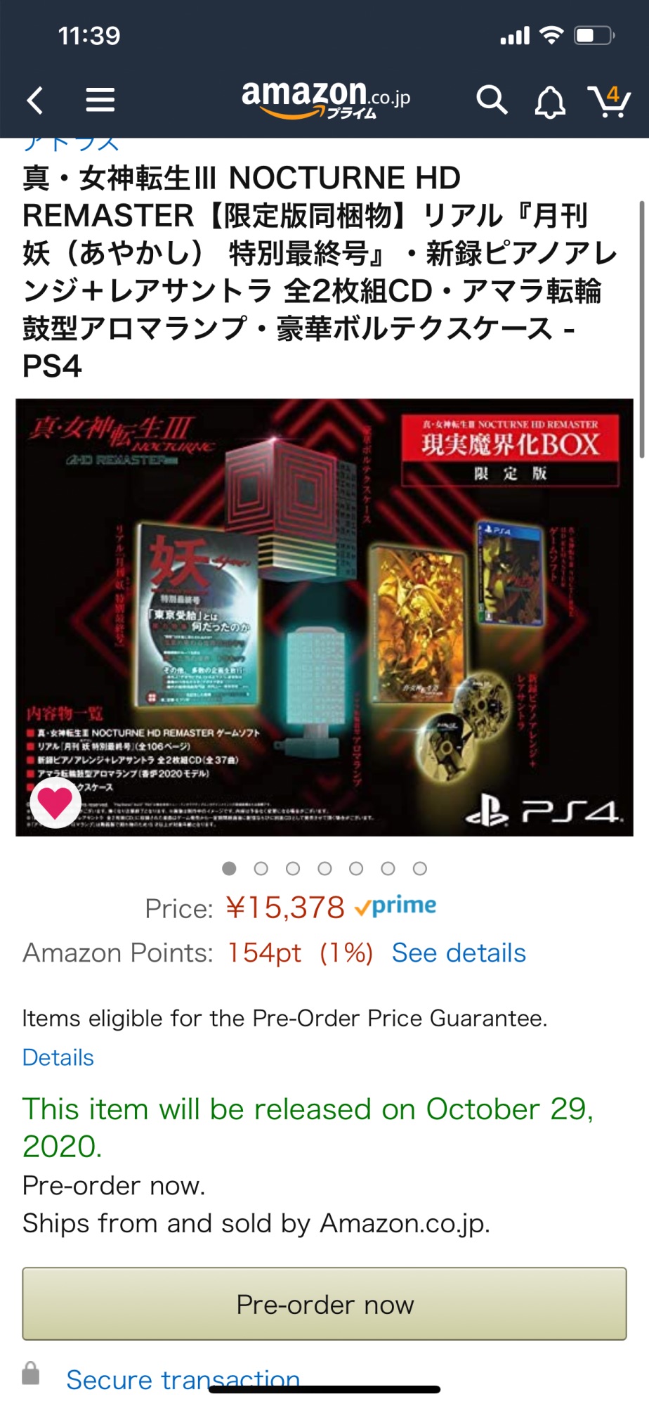 대부분의 일본 온라인 판매처에서 한정판이 품절됐습니다.