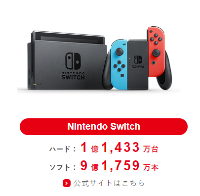 닌텐도 스위치 전세계 출하 대수 : 1억 1,433만대