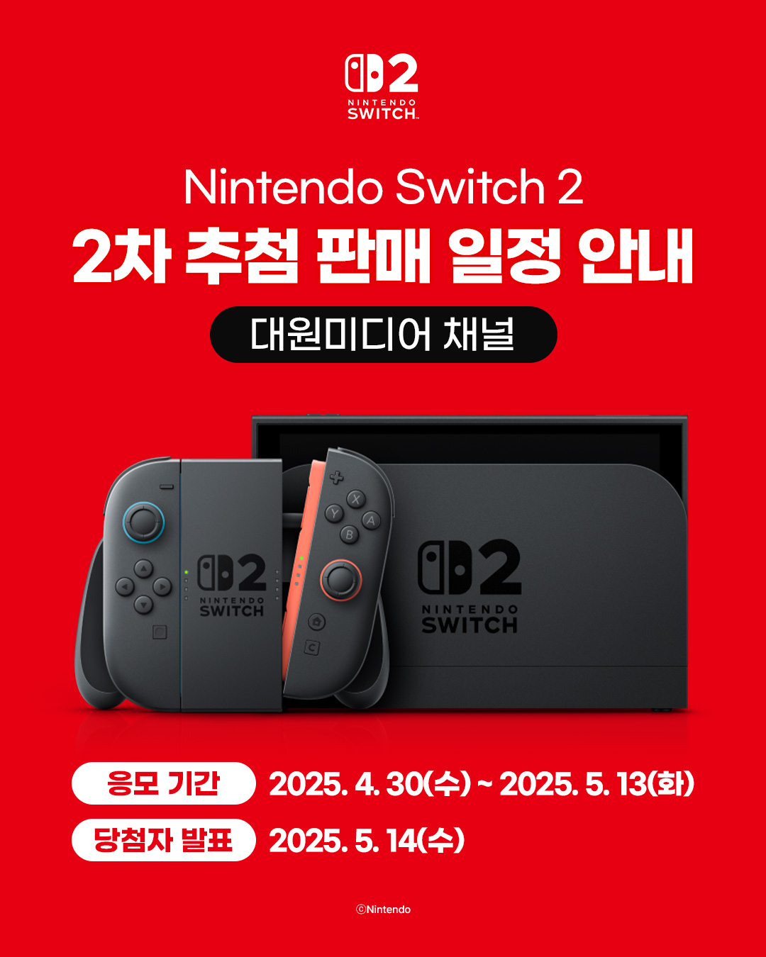 Nintendo Switch 2의 2차 추첨판매 일정을 안내해드립니다. (대원미디어 채널)