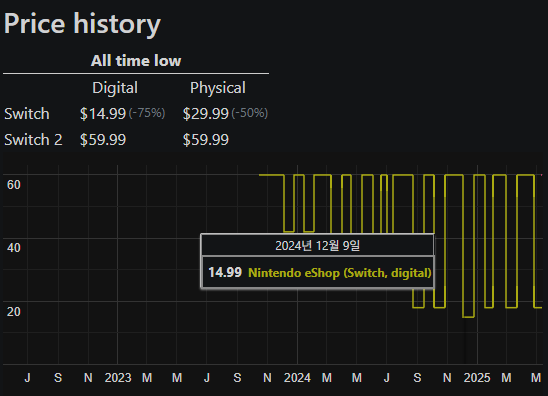지금 닌텐도 온라인 스토어에서 3만원 조금 안되는 가격으로 세일중 | 25.05.14 11:57 | | |