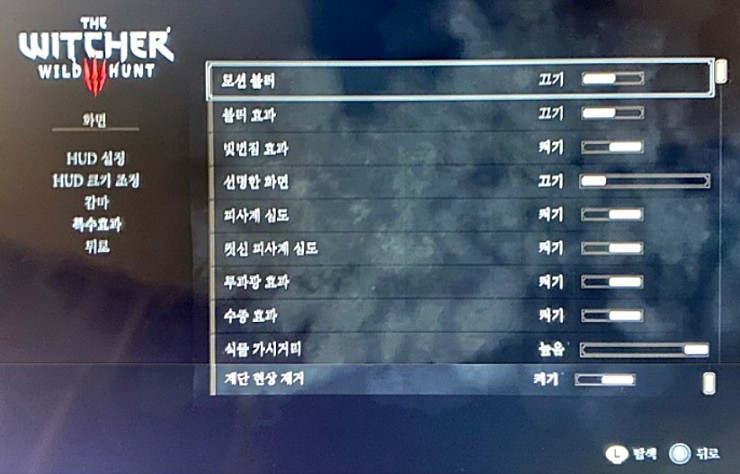 빛 번짐 끄고 선명한 화면 높음으로 선택하니 그동안 흐릿해서 눈이 피로했던 화면이 눈에 띄게 선명해지고 깔끔해지네요