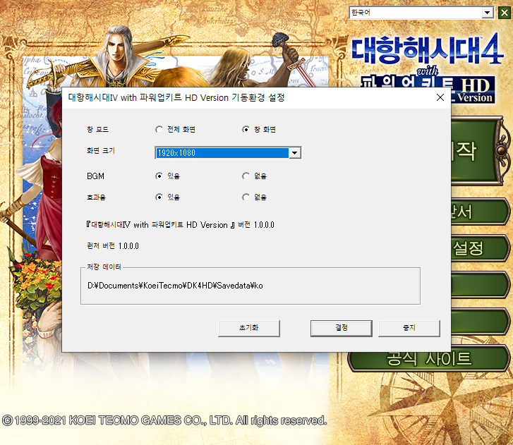 유통사일정[출시] 1999.02.26 (PC)[출시] 1999.12.02 (PS) [출시] 2000.03.31 파워업키트 (PC) [출시] 2001.12.06 파워업키트 (PS) [출시] 2006.03.02 (NDS) [출시] 2010.11.01 (피쳐폰) [출시] 2018.12.18 (아이폰) [출시] 2018.12.18 (안드로이드) [출시] 2021.05.20 대항해시대 4 with 파워업키트 HD (PC) [출시] 2021.05.20 대항해시대 4 with 파워업키트 HD (SWITCH) |