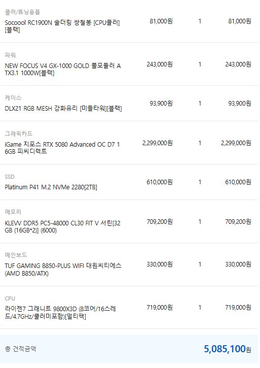 컴퓨존에서 변경해서 다시 골라봤는데 이건 어떨까요? 조언 부탁드립니다. | 26.02.23 17:41 | |