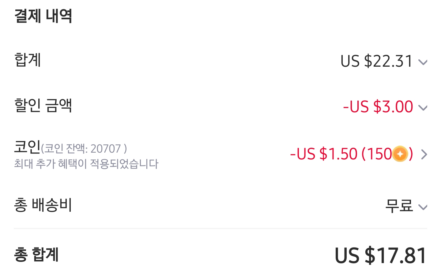 코인페이지에서 1.5~8달러정도 하고 코인할인율 높은거 아무거나 같이담으면 3달러 쿠폰 적용 가능합니다