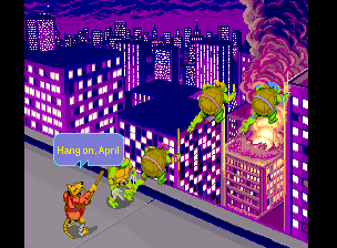 스프린터의 지시에 따라 에이프릴을 구하러 건물로 뛰어드는 거북이들...