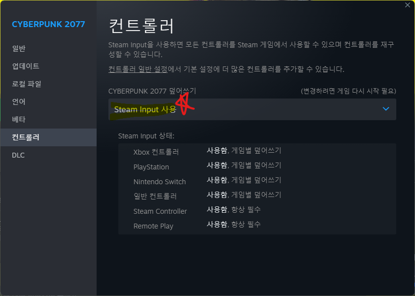 라이브러리에서 인식 안되는 게임의 설정에 들어가셔서 스팀인풋 사용으로 맞춰보시면 어떨까요?
