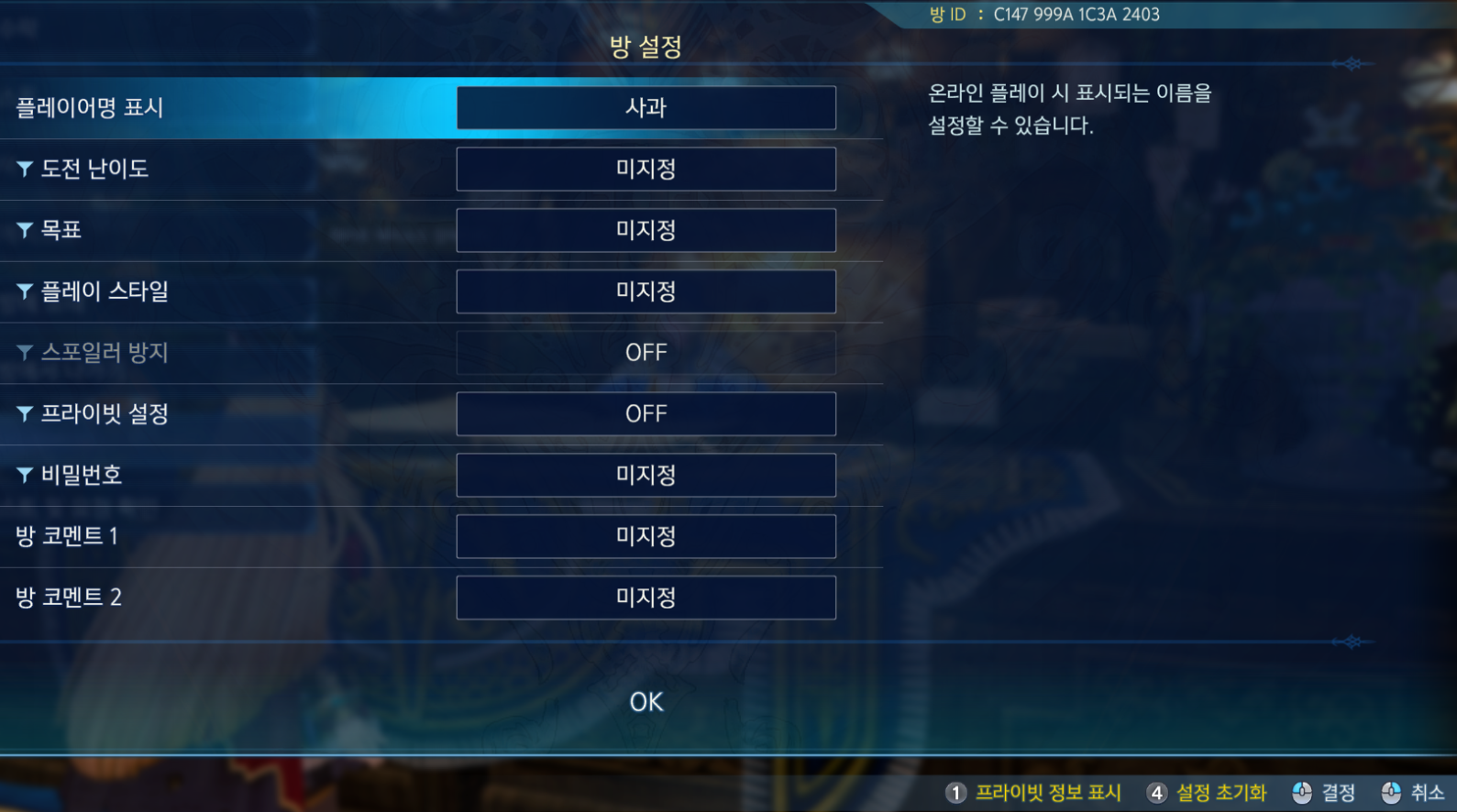 방만드시고 퀘스트카운터에 방설정 들어가셔서 요 화면에서 프라이빗 정보표시 누르면 방 id가 나옵니다 방id 주십쇼 | 24.04.02 20:30 | | |