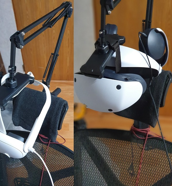 최근엔 더 튼튼한 고정대로 바뀌어서 PSVR2 도 일반 컨텐츠할땐 고정해 무게를 안느끼고 얹어 사용.