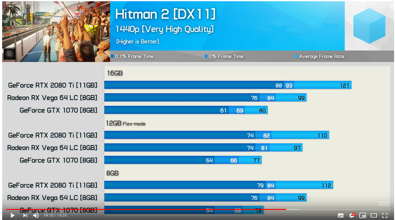 벤치상에서 4+4듀얼채널보다 4+8 플렉스 램구성이 램용량이 더 많은에도 히트맨2를 제외한 게임과 작업에서 성능이 떨어지는 결과가 나오고 있습니다.