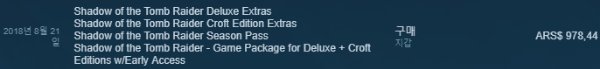 Deluxe Extras Croft Edition Extras Season Pass 이렇게는 포함되어있다고 나오네요. | 18.08.21 17:42 | | |