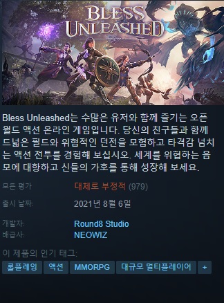 발매한지 4시간만에 평가는 대체로 부정적 MMO에서 전투가 재미없다는건 레이싱 게임에서 자동차는 없고 자전거 밖에 없는 꼴 게임성은 대부분의 평가처럼 미완성이고 전투 부분에서 한마디 할께 이딴게 콤보면 그냥 오토마우스 쓴다 전투에서 콤보를 접목해 온라인MMO를 만들 생각이였으면 데빌메이크라이 시리즈나 인왕시리즈 즉, 평가가 좋은 액션 게임들이 어떤 콤보시스템을 가지고 있는지 담당 PD는 전부 섭렵하고 설계했어야 했다 이 게임에서 콤보는 자동으로 마우스 좌클릭이나 우클릭을 자동연타로 눌러주는 오토마우스 하나 있으면 걸로 끝이다. 아예 전투시스템을 전부 갈아엎고 출시했어야 정상인데 선임 개발자들이 전부 잘렸는지 ㅄ인 상태로 출시했다 거기다가 치명적인건 최적화 같은 MMO로 블레스와 비교해도 이질감이 없는 MMO 파이날 판타지는 매우 쌩쌩 돌아가고 PC소음도 없다 근데 블레스는 시작하면서부터 PC에서 굉음이 들린다 9700k + 2070s (옵션을 상으로 하던 하로 하던 뭘로 해도 굉음발생) 그렇다고 블레스의 그래픽이 뛰어나냐고? 전혀~ 이런 그래픽이면 2060 or 1060ti으로도 널널하다 타 플렛폼에서 망한게임을 스팀으로 재출시 했는데 왜 거기서 망했는지 아주 잘 이해했다