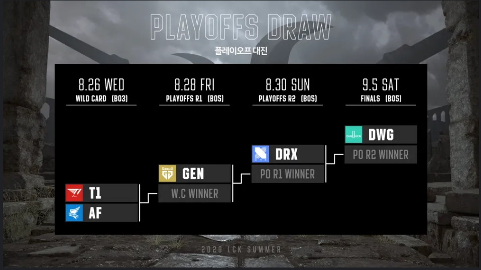 15 스프링 - 아래서 올라온 팀 (T1) 15 섬머 - 직행팀 (T1) 16 스프링 - 아래서 올라온 팀 (T1) 16 섬머 - 직행팀 (락스) 17 스프링 - 직행팀 (T1) 17 섬머 - 직행팀 (롱주) 18 스프링 - 직행팀 (킹존) 18 섬머 - 직행팀 (KT) 19 스프링 - 아래서 올라온 팀 (T1) 19 섬머 - 아래서 올라온 팀 (T1) 20 스프링 - 아래서 올라온 팀 (T1) 20 섬머 - 직행팀 (담원) 위에서 언급한 플옵 시스템을 사용하던 15~20시즌 우승팀만 봐도 알겠지만 T1을 제외하고는 아래서 올라온 팀이 우승하는 경우는 '한번도' 없었음 그래서 플옵 들어가면 정규 시즌때 불안했던 T1이라도 다들 무서워했던건데 지금 그 논리면 T1은 [연전치르고 그 기세로 결승 T1이 쉬다 감빠진 1위팀을 이기고 우승한것]이라는 마치 혜택을 본것 같은 논리가 되버리거든;