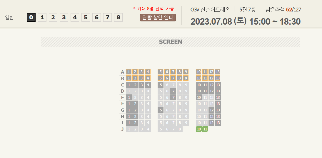 자리 얼마나 찼는지 궁금해서 봤더니 좋은 자리는 이미 다 예약되어 있네요 ㄷㄷ