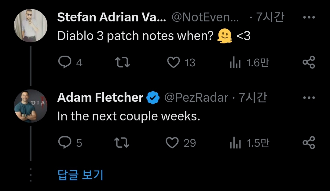 아담 플레처가 올린거보고 반사적으로 디아4라고 생각해버린 점...ㅠㅜ | 23.08.09 14:26 | | |