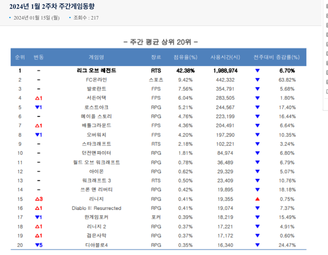 http://top.17173.com/list-2-0-0-0-0-0-0-0-0-0-2.html 현재 인기 높은 수준까지는 아님. 없는건 아니지만 | 24.01.17 14:57 | | |
