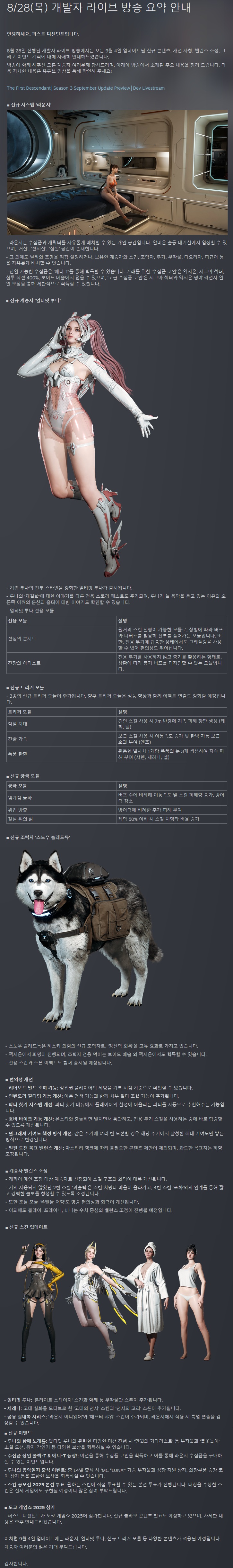 [정보] 퍼스트 디센던트 - 8/28(목) 개발자 라이브 방송 요약 안내