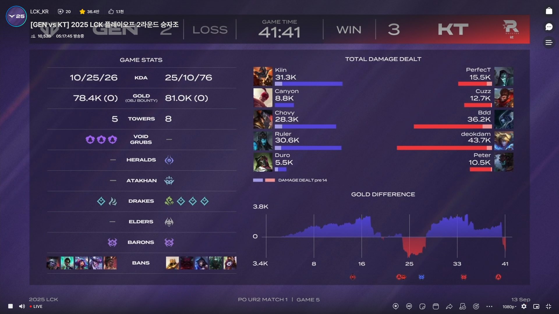 전설의 초고점 KT는 젠지조차 잡는다. 오늘이 그날이었다..
