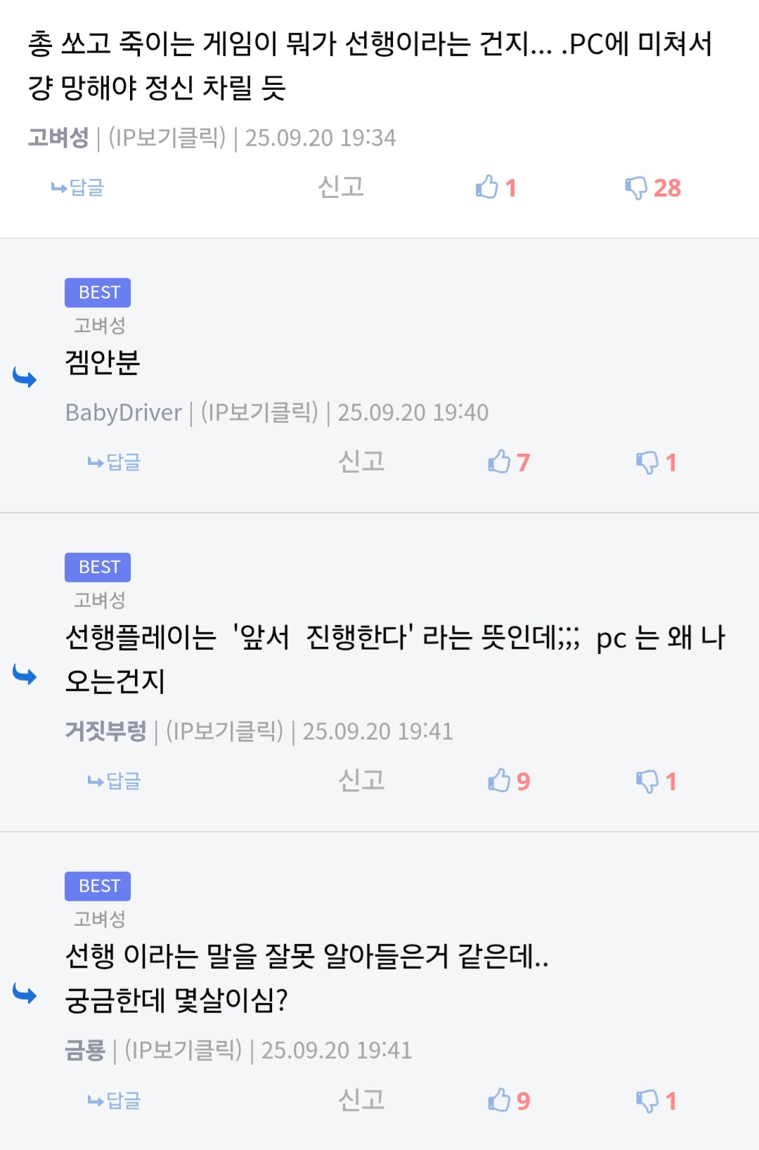 선행플레이는 '앞서 진행한다' 라는 뜻인데;;; pc 는 왜 나오는건지 | 25.09.20 19:41 | | |
