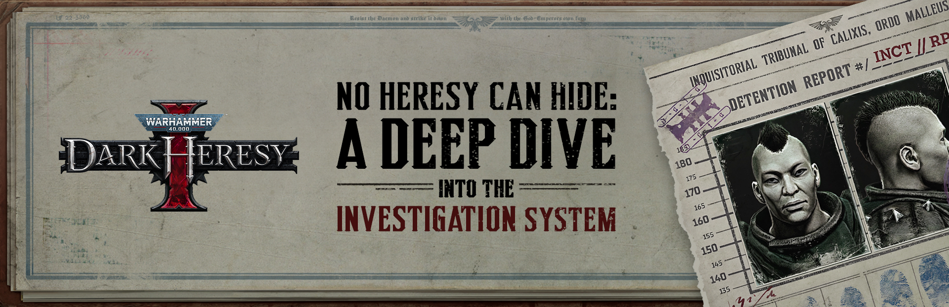 설정의 분위기를 제대로 전달하기 위해 워해머 40,000: 다크 헤러시에는 탐정 스타일의 조사 시스템이라는 완전히 새로운 게임플레이 메커니즘을 개발 중입니다. 스토리에 매끄럽게 통합된 이 시스템은 게임의 핵심 기능 중 하나가 될 것입니다. 스토리가 진행되는 동안 플레이어는 사소한 사건부터 중대한 사건까지 해결해야 하는 수많은 사건에 직면하게 되며, 이는 전체 부문에 영향을 미치게 됩니다. 불결한 일탈의 오물과 공포에 점점 더 휩쓸리게 되면서 플레이어는 추리와 탐구가 자신의 예술이 될 것입니다.