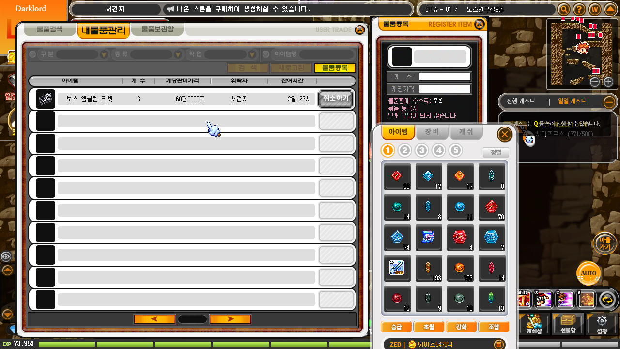 레벨업을 더 하기위해 360~440 렙 일퀘도 진행
