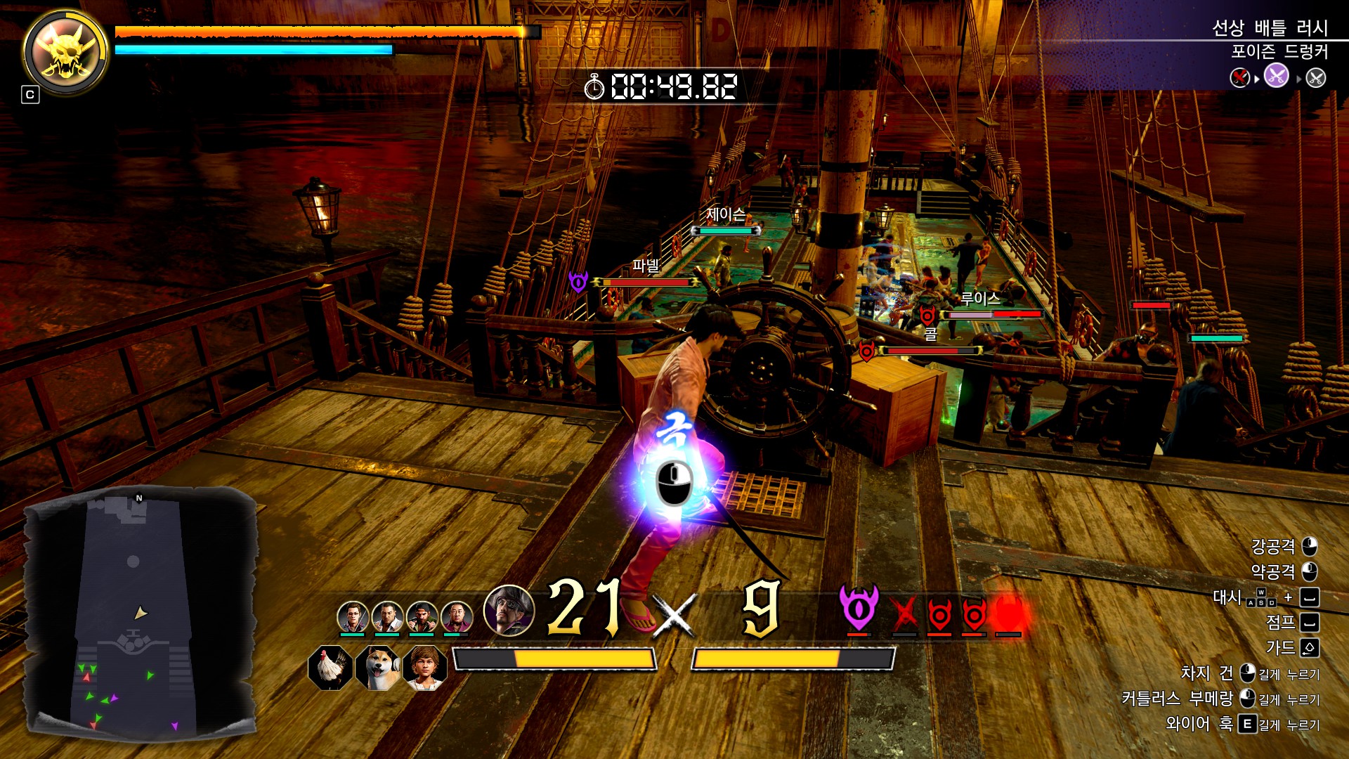 선상전투 전용 기술입니다. 솔직히 일부러 배를 조종하는 핸들까지 가서 사용해야 기술이기는 한데. 또 막상 써보면 그리 나쁘지는 않더라구요.