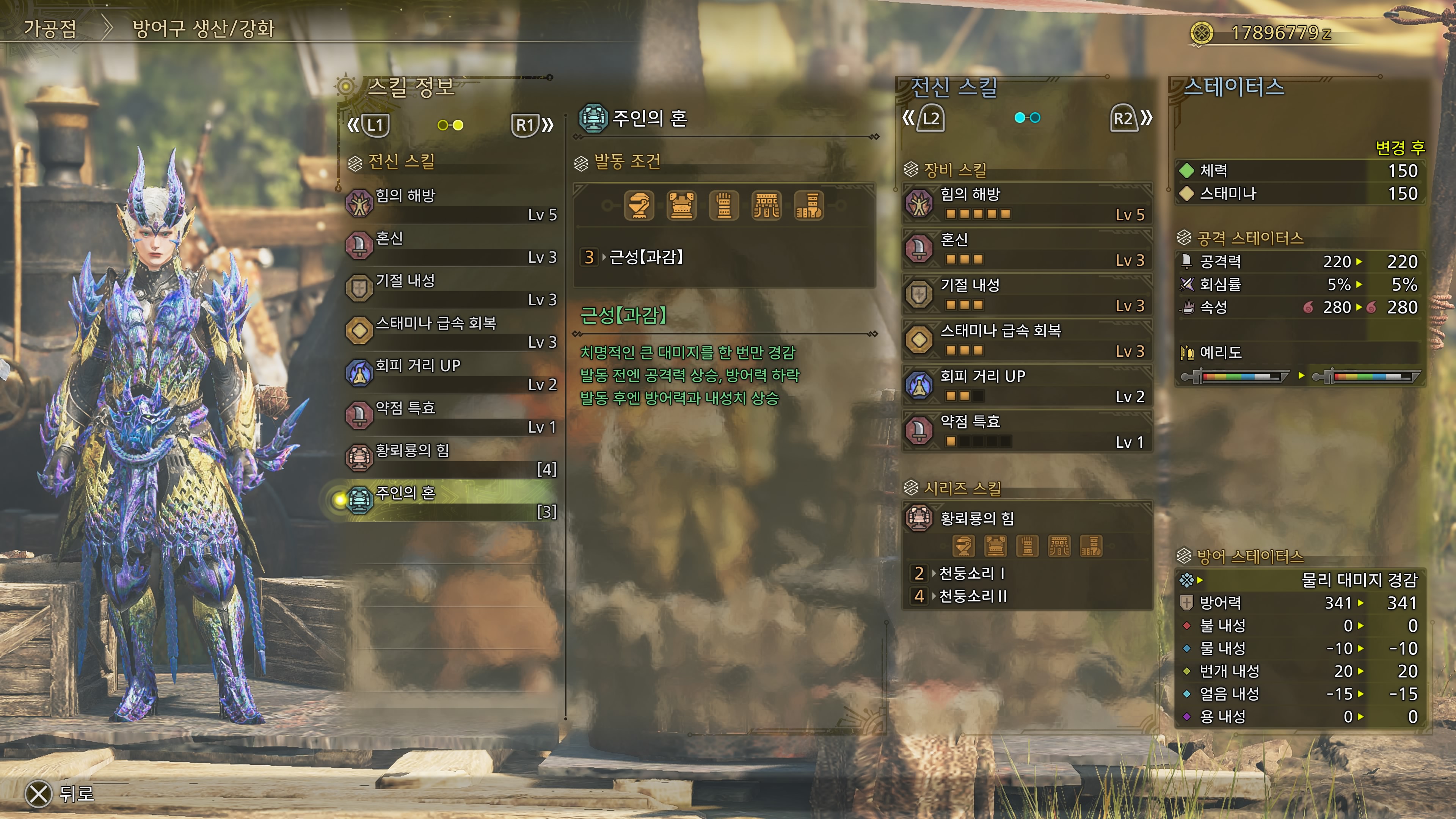 개인적으로, 왕다하드 방어구 스킬은 도전자 메인에 소재로 도전의 호석 강화가 가능하지 않을까 추측하고 있습니다.