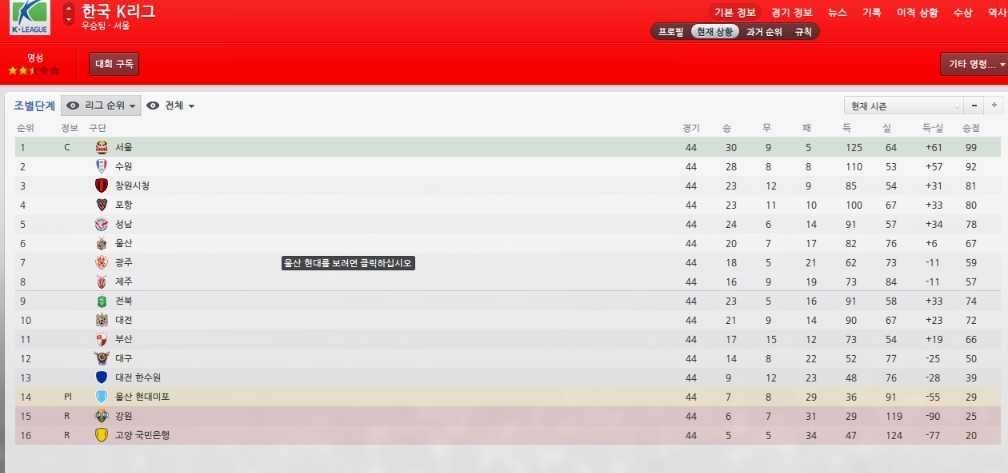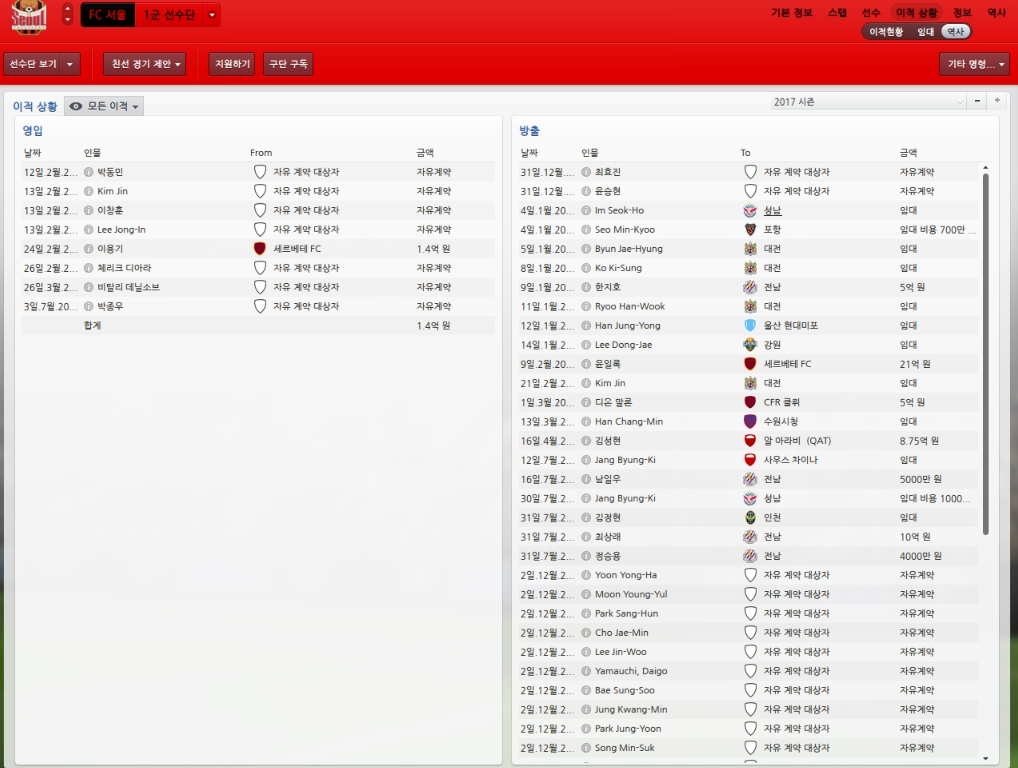 [스샷] FM2013 유재석감독 6년차-1)K리그 2017 FC서울 [2]