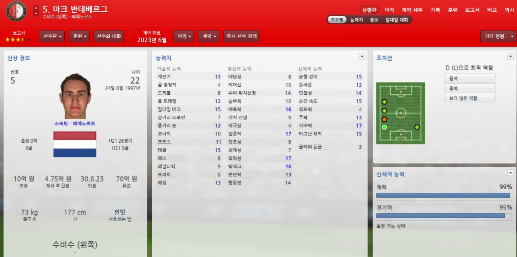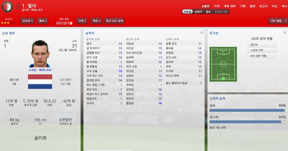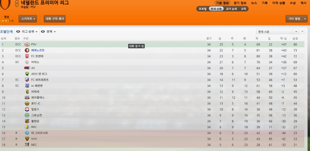 네덜란드 리그도 선수들 능력치가 상당히 괜찮네요 ㅊㅊ