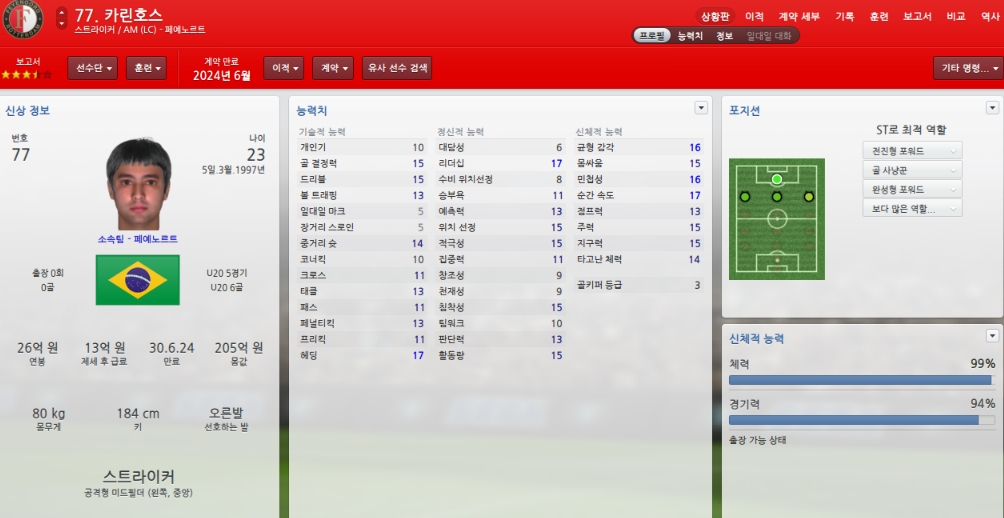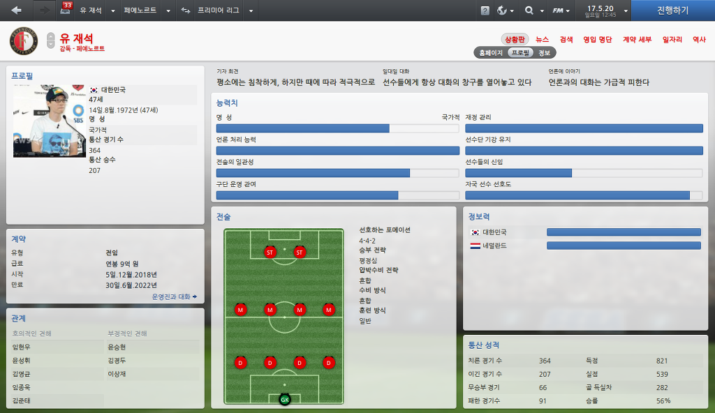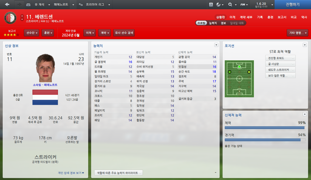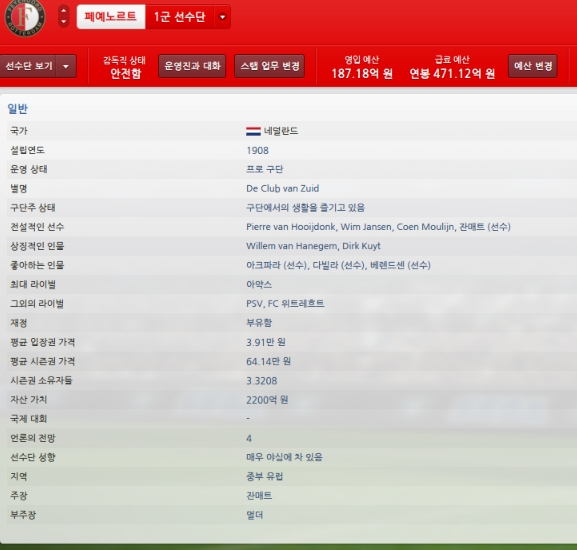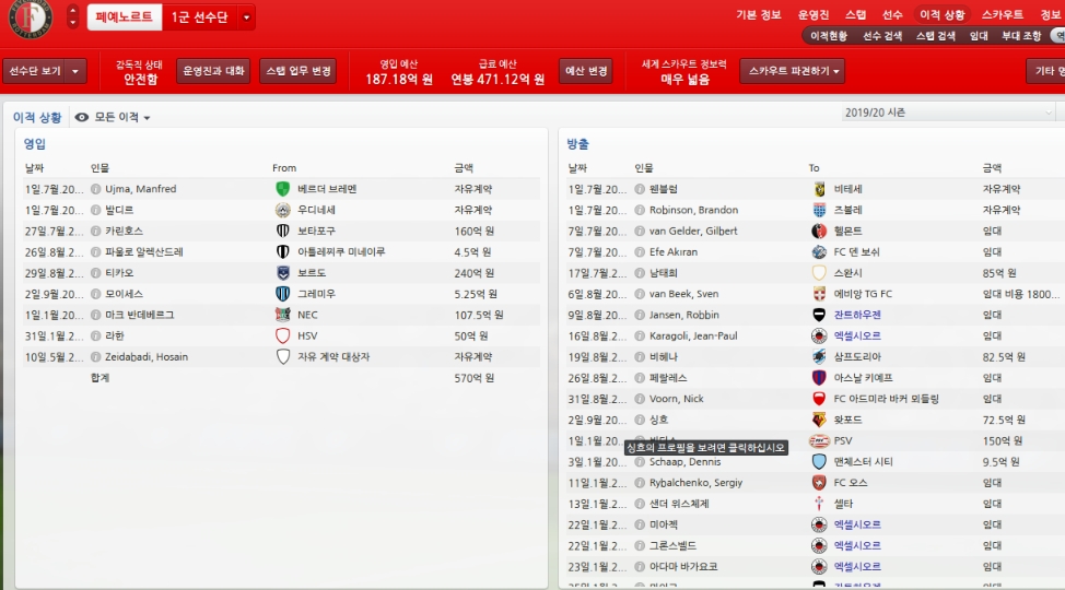 [스샷] FM2013 유재석감독 9년차-1)네덜란드프리미어(19/20) 2020페예노 [2]