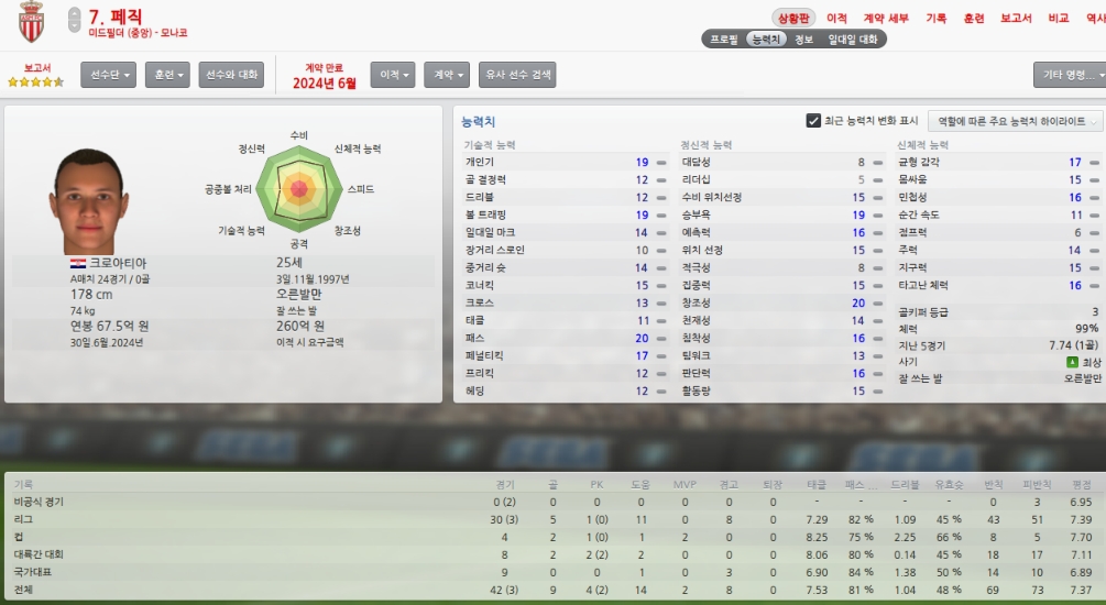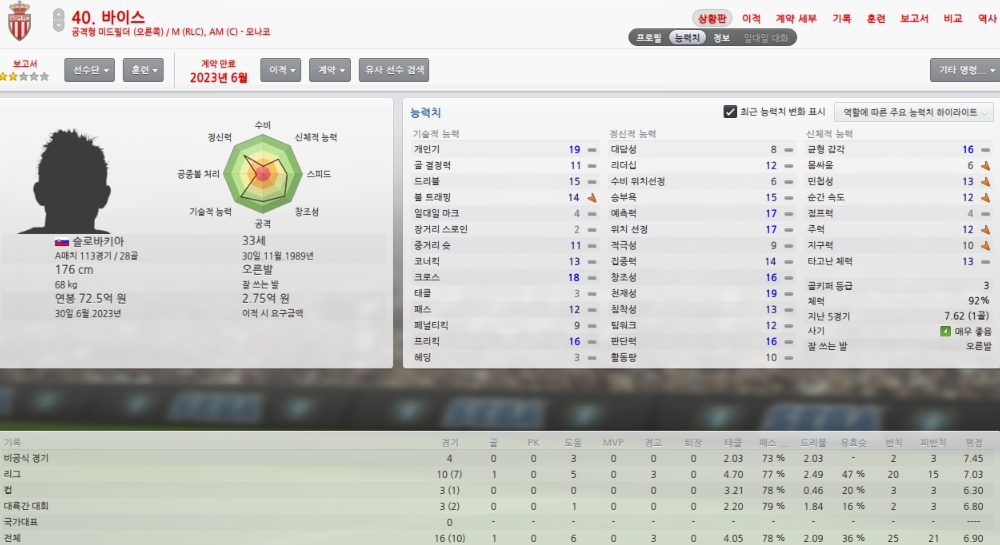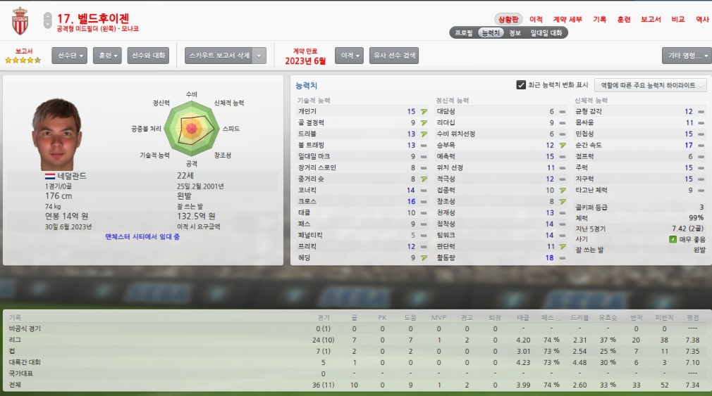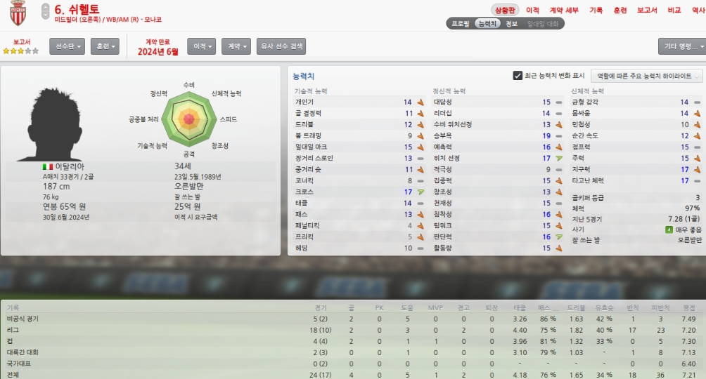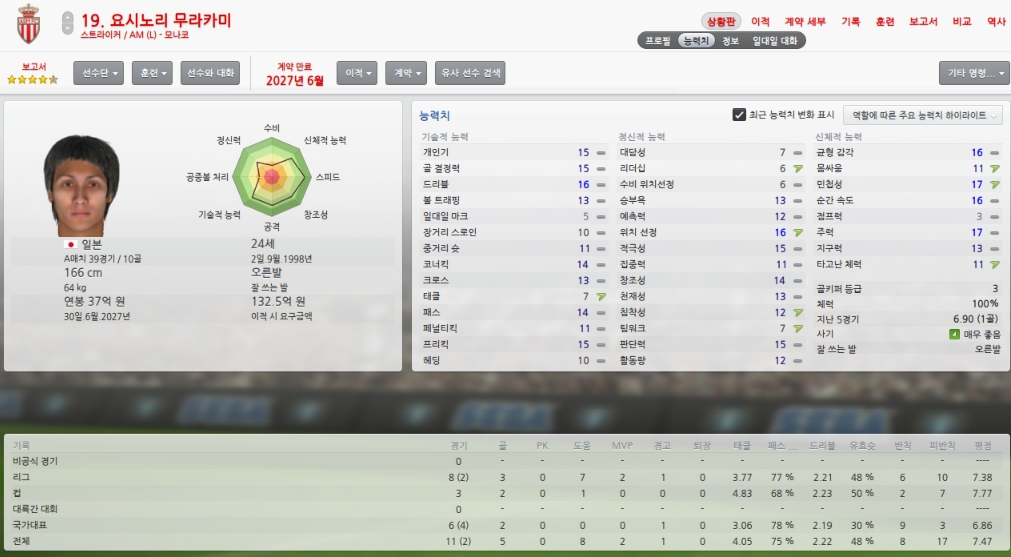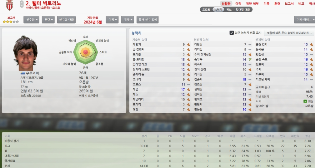 올시즌초 취약포지션이였던 레프트윙을 성실히 메워주었습니다.